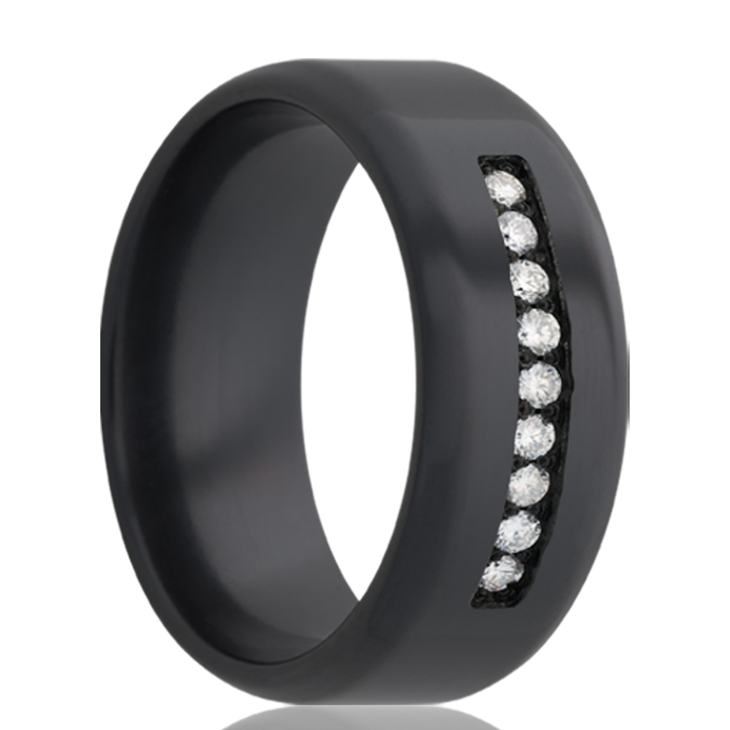 Beveled edge Zirconium band, polished with approximately .30 ctw. Select stone type, width and size then add to cart.