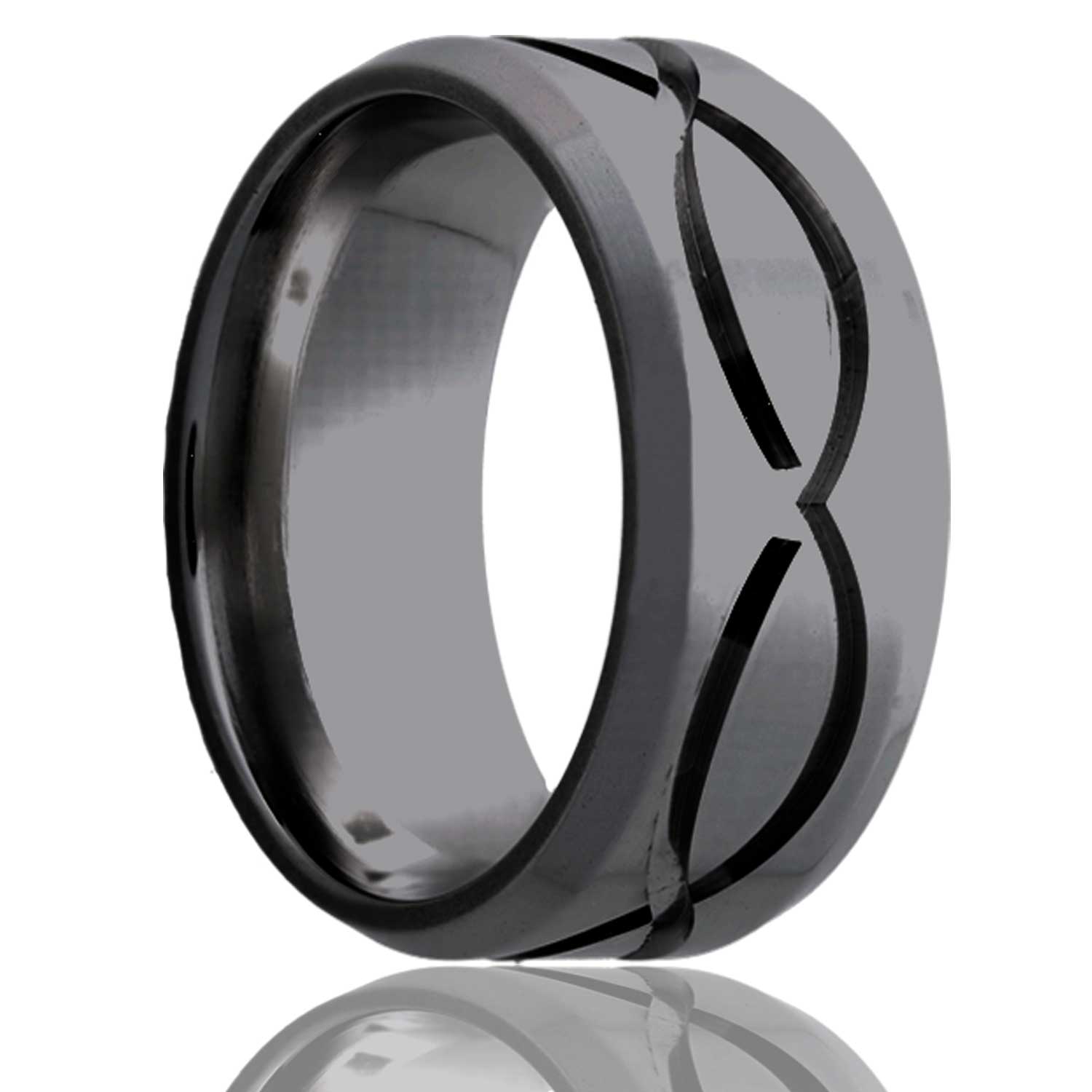 Beveled edge Zirconium ring with a milled pattern. Select width and size then add to cart.