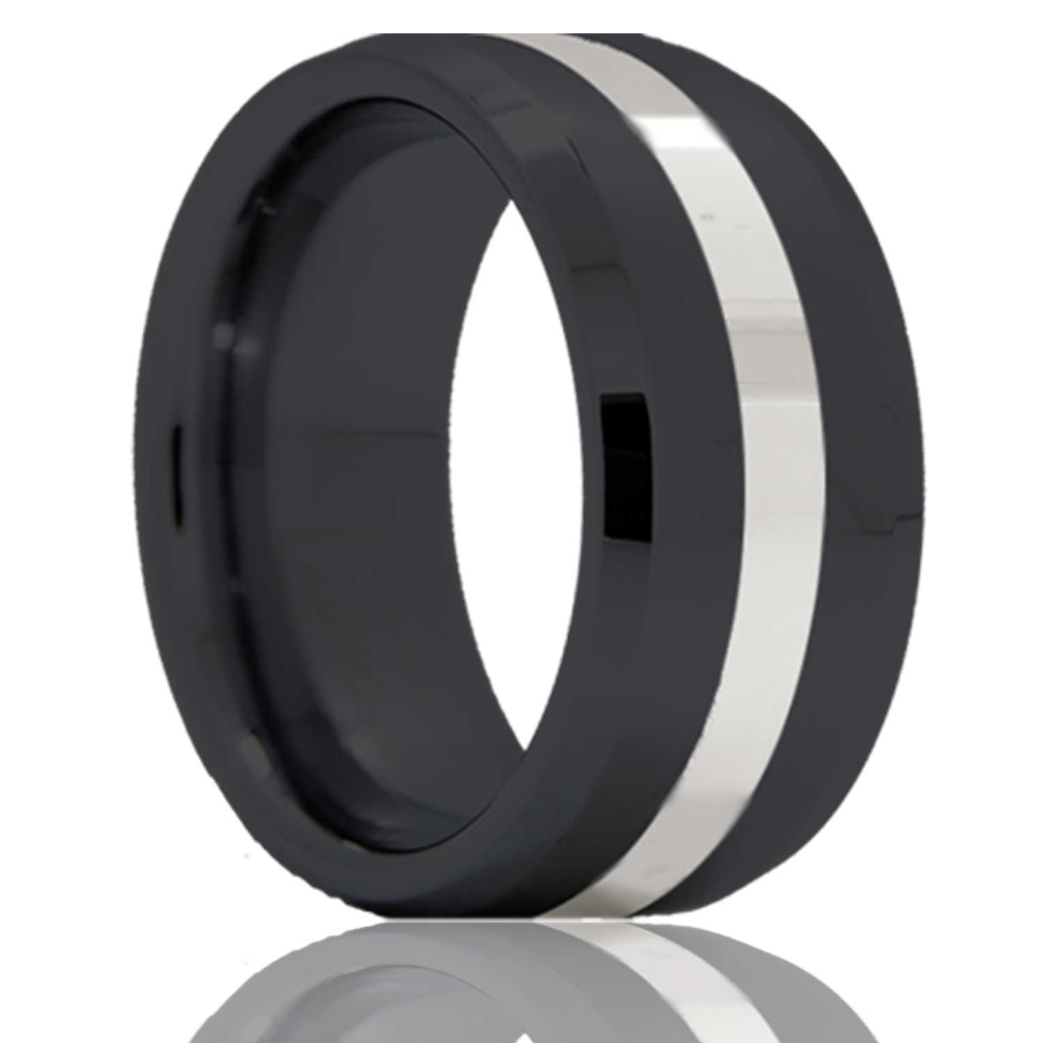 Beveled edge Zirconium band, all high polish with a 2mm platinum inlay. Select width and size then add to cart.