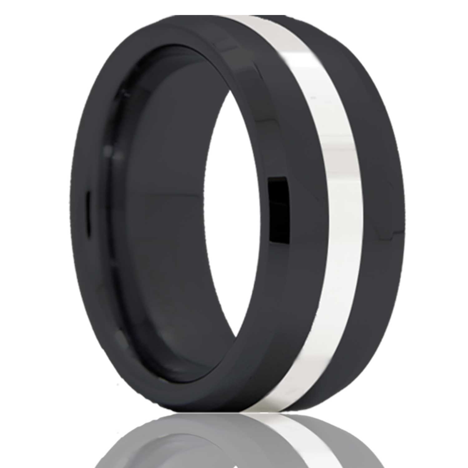 Beveled edge Zirconium band, all high polish with a 2mm argentium silver inlay. Select width and size then add to cart.
