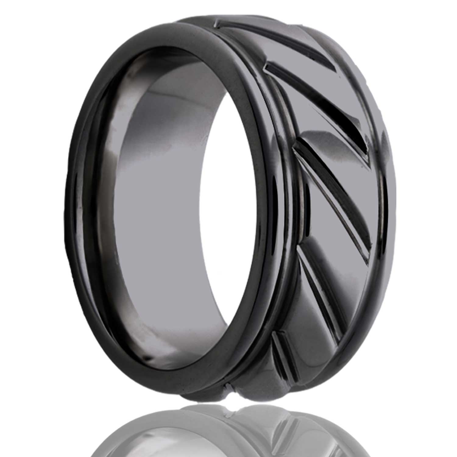 Deep grooved Zirconium ring with a milled pattern. Select width and size then add to cart.