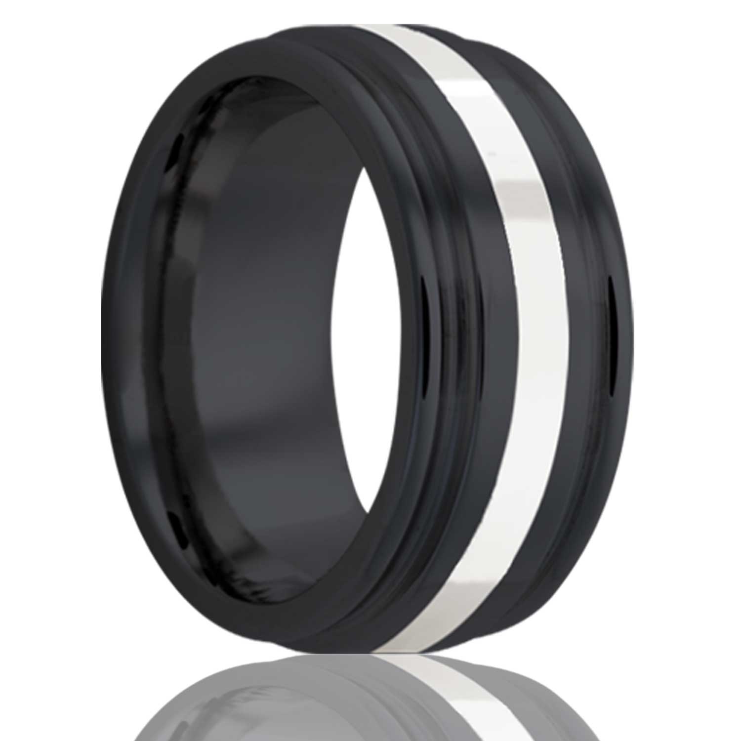 Deep groove Zirconium band, all high polish with a 2mm argentium silver inlay. Select width and size then add to cart.