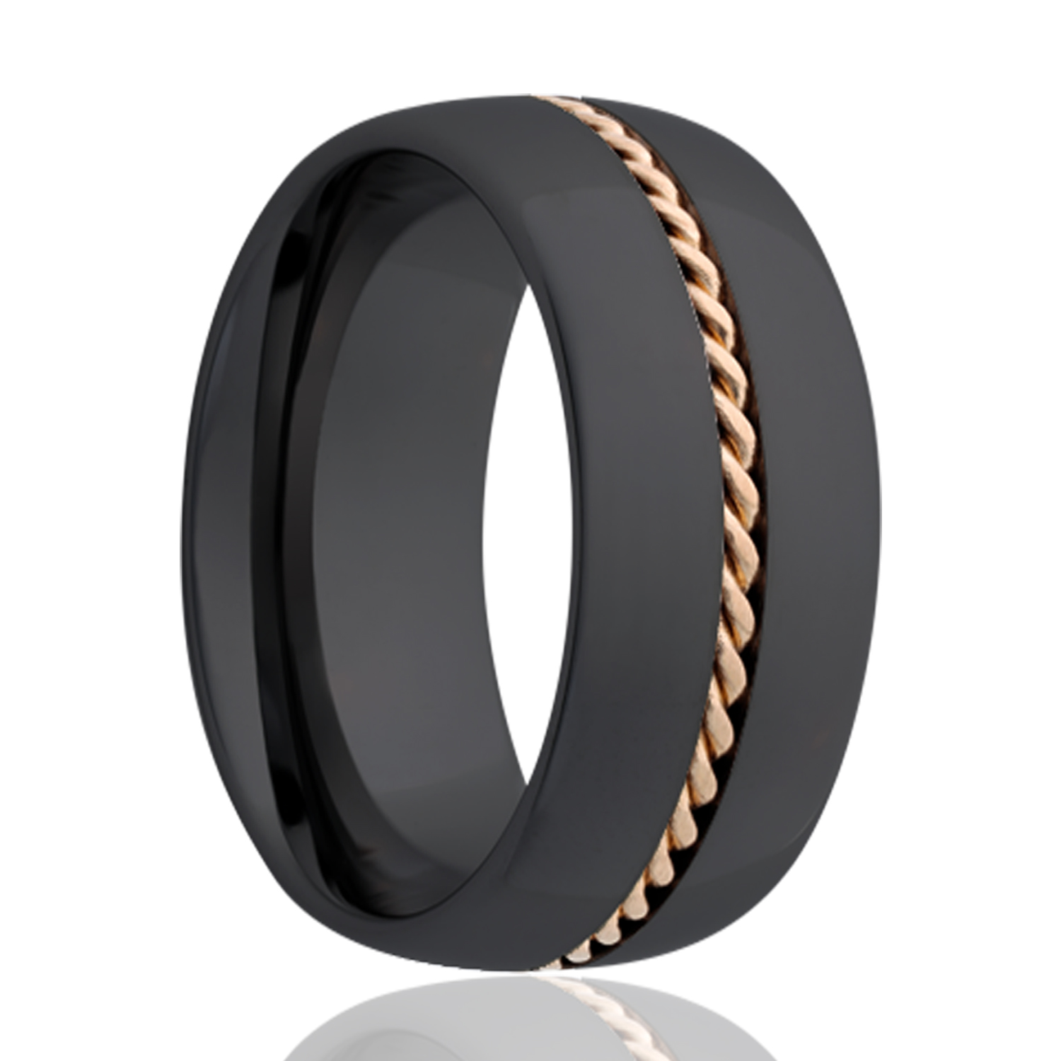 Dome Zirconium band, all high polish with a 1mm hand woven 14k rose gold inlay. Select width and size then add to cart.