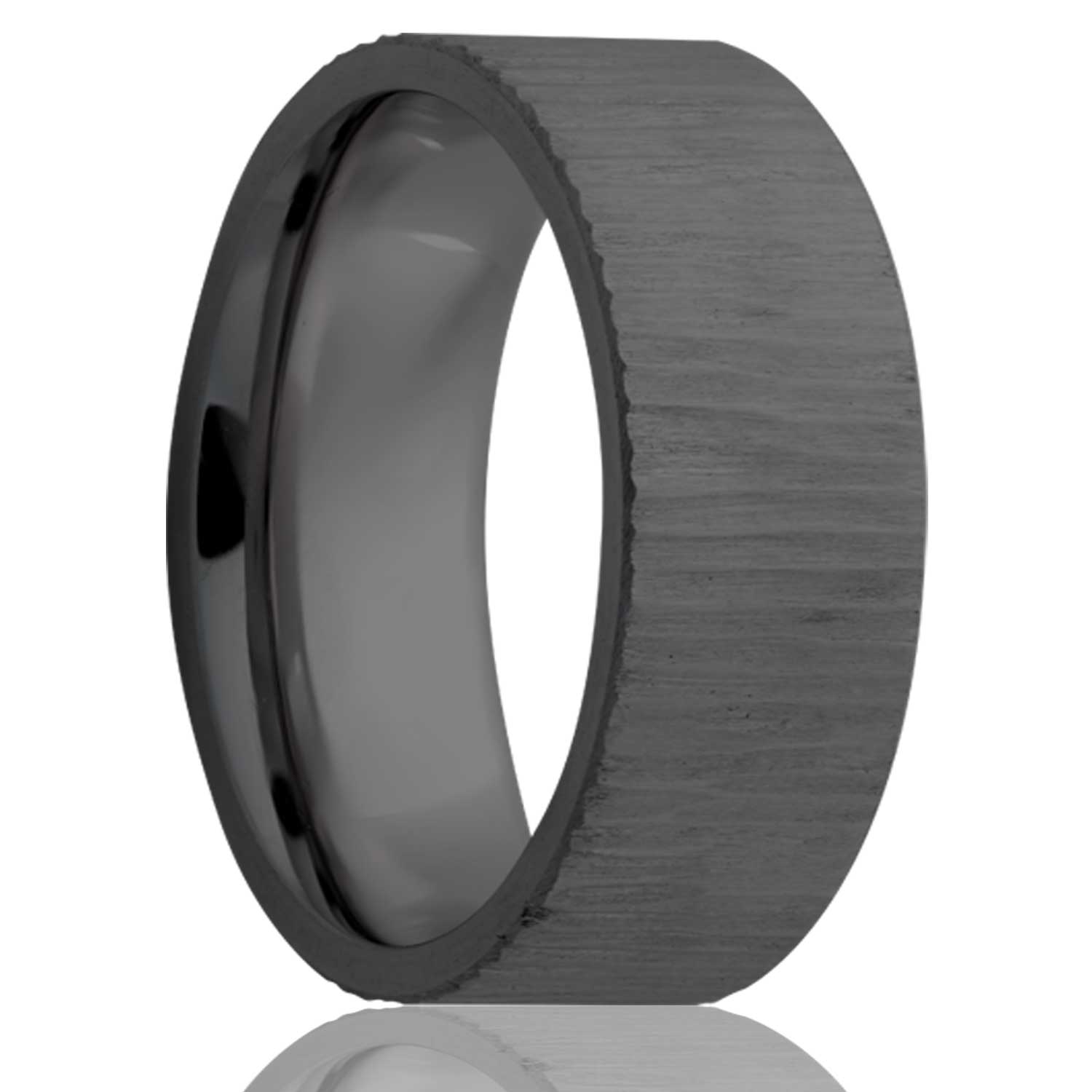 Flat Zirconium band, Tree bark finish on top. Select width and size then add to cart.