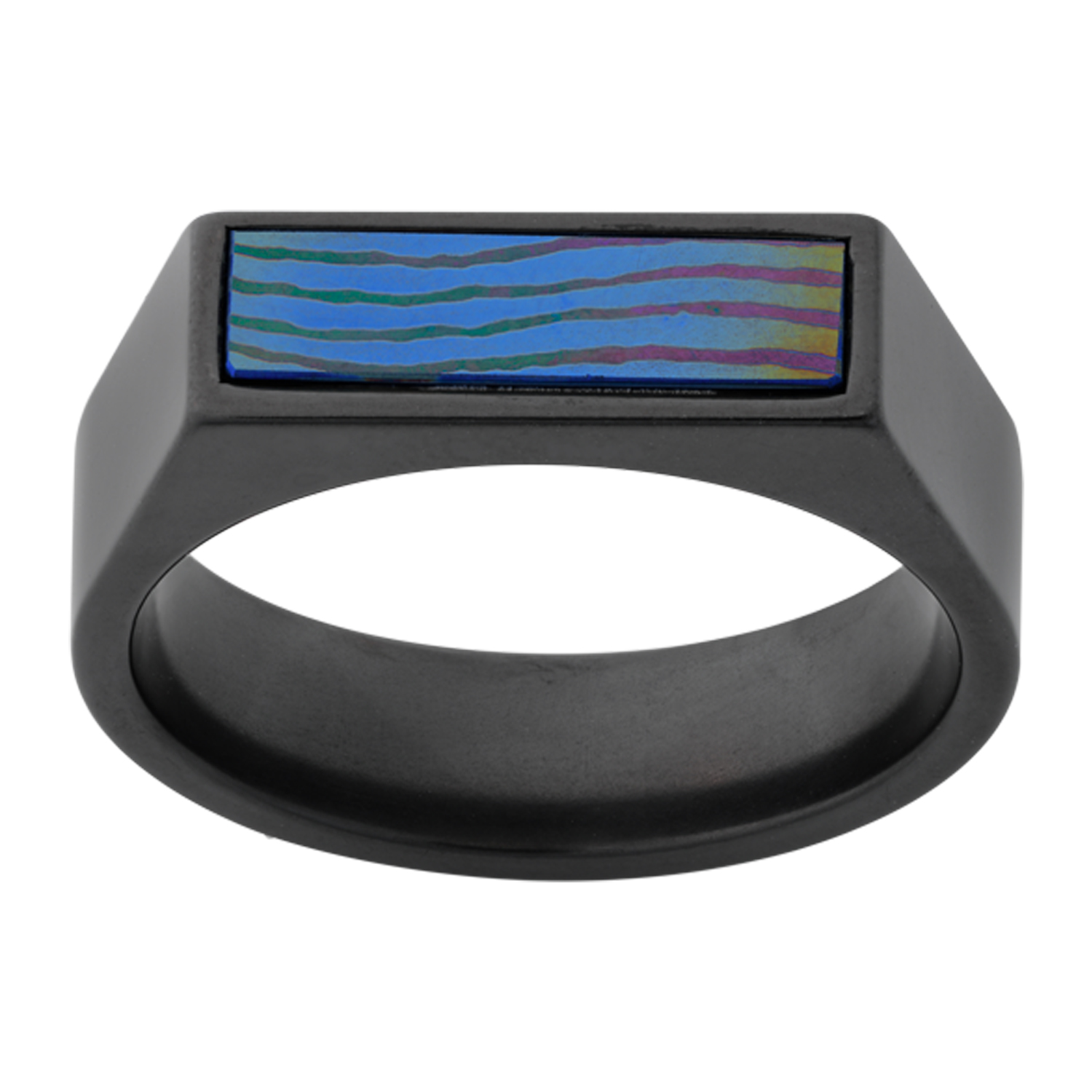 Zirconium signet ring with Moku-ti inlay. Select width and size then add to cart.