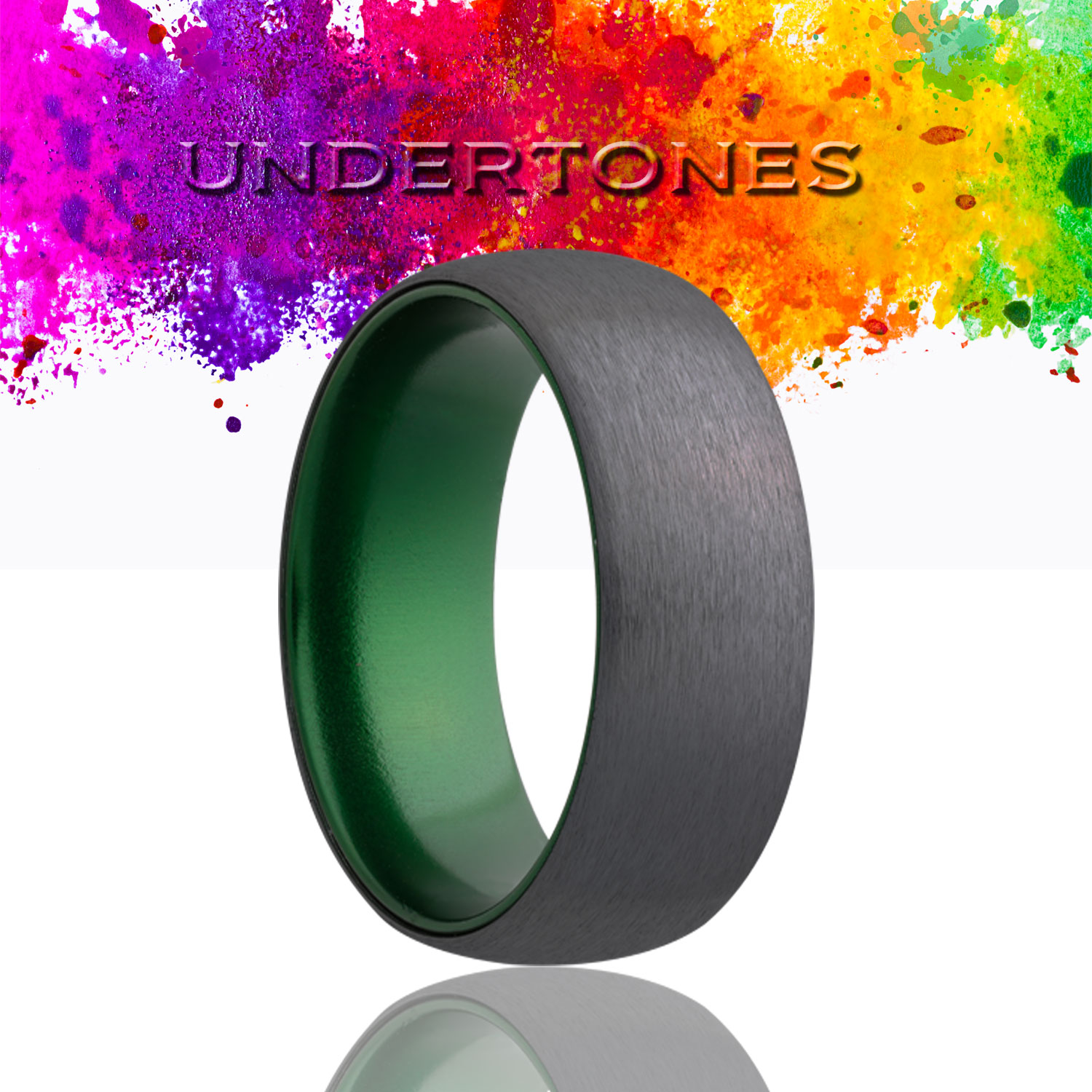 Dome Zirconium band, satin finish top, anodized sleeve. Select width and size then add to cart.